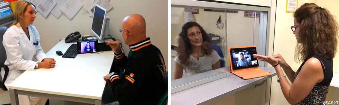 Il servizio VEASYT Live! è attivo tutti i giorni anche presso gli ambulatori, ospedali e strutture socio-sanitarie dell’AULSS 4 Veneto Orientale, dell'AULSS 3 Serenissima e dell'AULSS 5 Polesana, presso le quali il personale può comunicare agevolmente con pazienti sordi che hanno bisogno di visite mediche, esami, colloqui con personale medico.